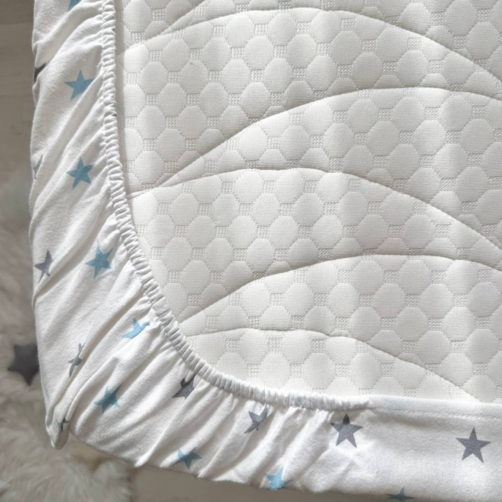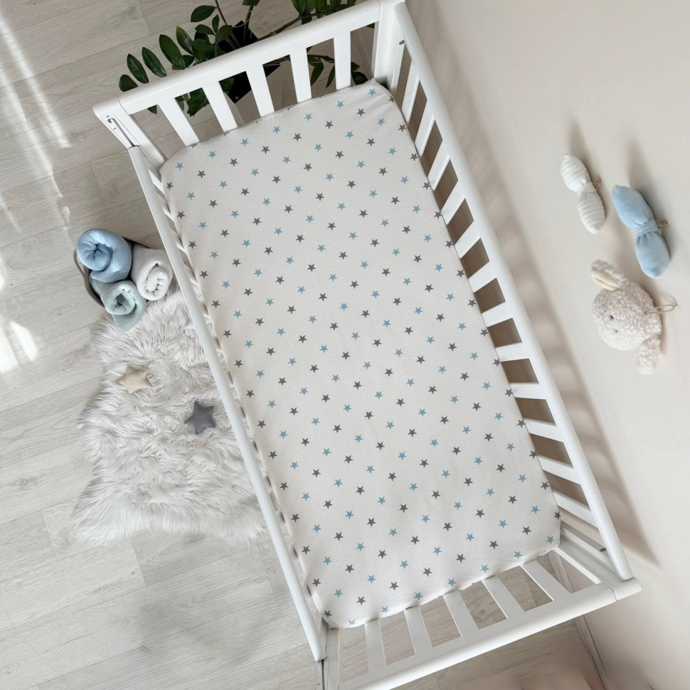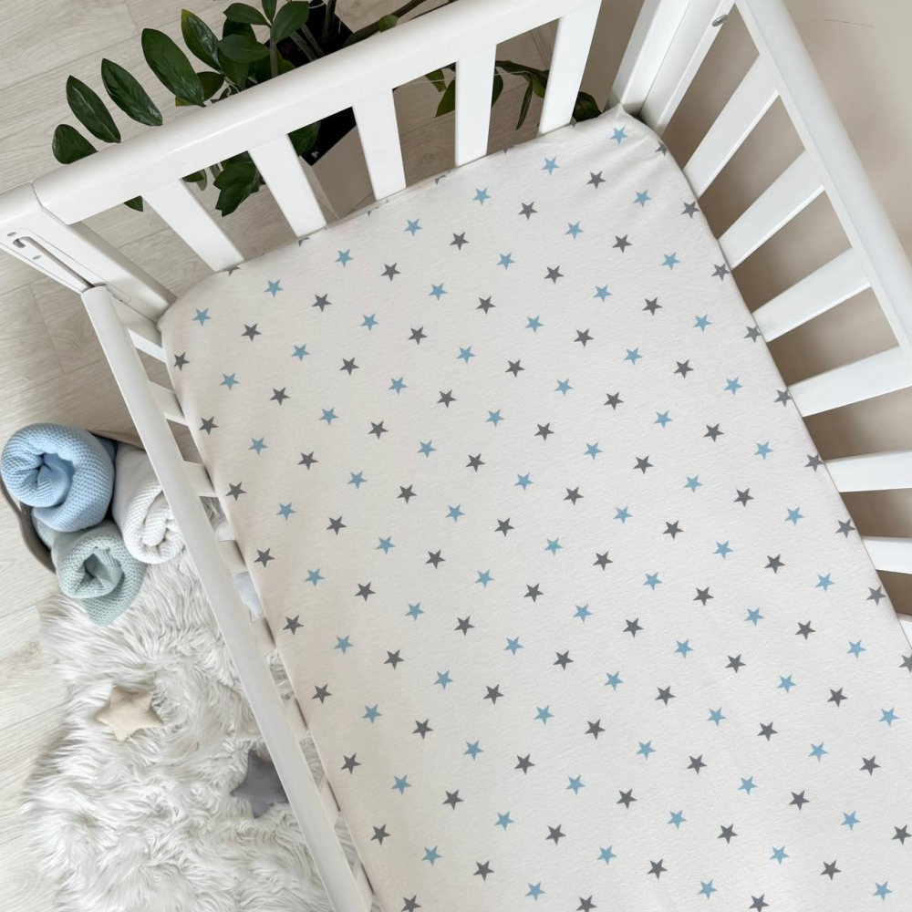 Простынь фланель "Зірка сіро-блакитна" (на резинке) 60х120см