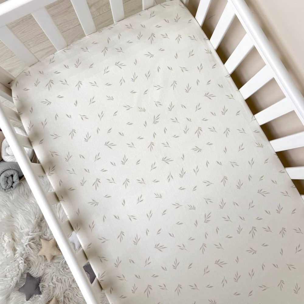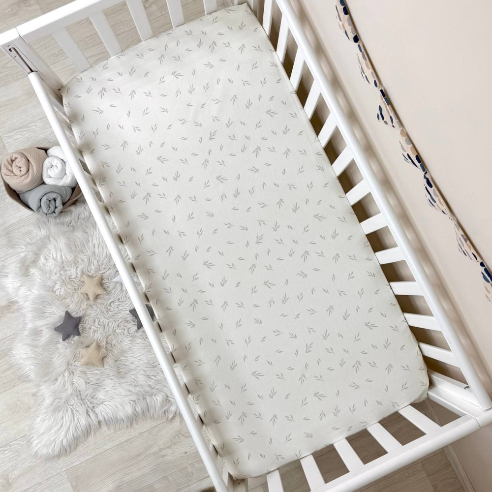 Простирадло на резинці "Листочки беж" (поплін) 60х120см