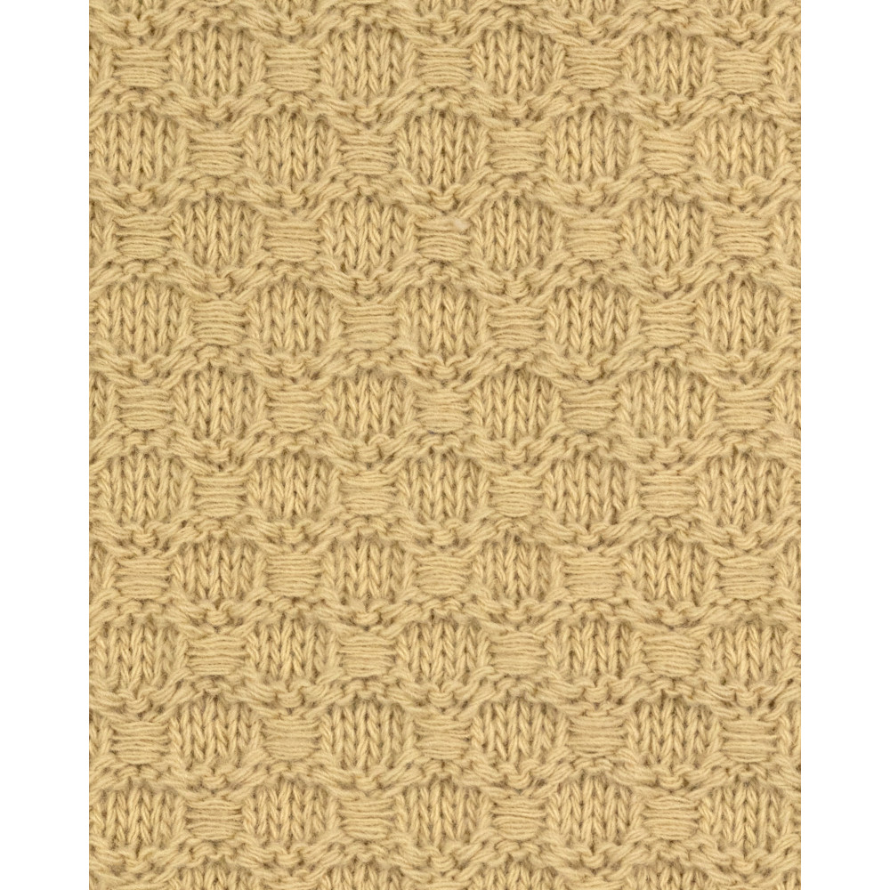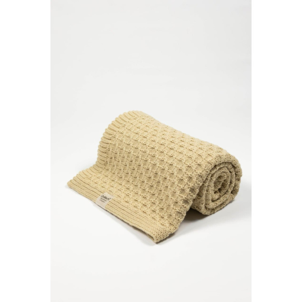 Для пледа ми обрали пряжу зі збалансованої суміші: 30% бавовни для природної повітропроникності та 70% акрилу, що забезпечує форму, стійкість до деформацій і збереження первинного вигляду навіть після численних прань. У результаті плед виходить неймовірно м’яким, не колеться та не подразнює навіть найчутливішу шкіру немовляти. А фактурна в’язка стимулює тактильний розвиток маленьких пальчиків, які пізнають світ через дотик.