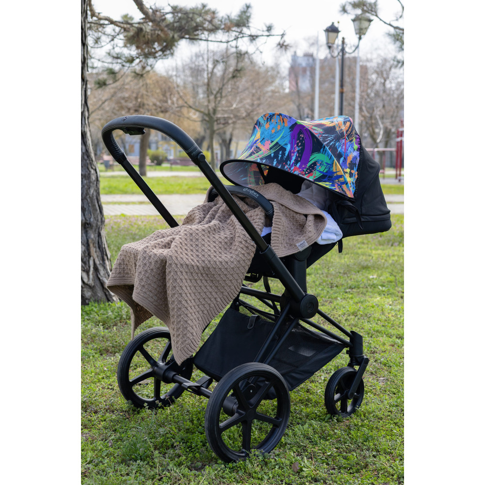 Для пледа ми обрали пряжу зі збалансованої суміші: 30% бавовни для природної повітропроникності та 70% акрилу, що забезпечує форму, стійкість до деформацій і збереження первинного вигляду навіть після численних прань. У результаті плед виходить неймовірно м’яким, не колеться та не подразнює навіть найчутливішу шкіру немовляти. А фактурна в’язка стимулює тактильний розвиток маленьких пальчиків, які пізнають світ через дотик.