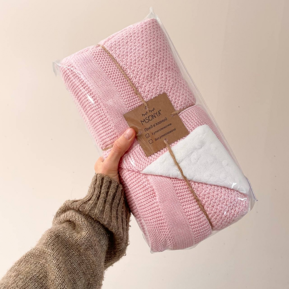 Плед Рогожка-Wellsoft рожевий (в`язка утеплена) 100х80 см