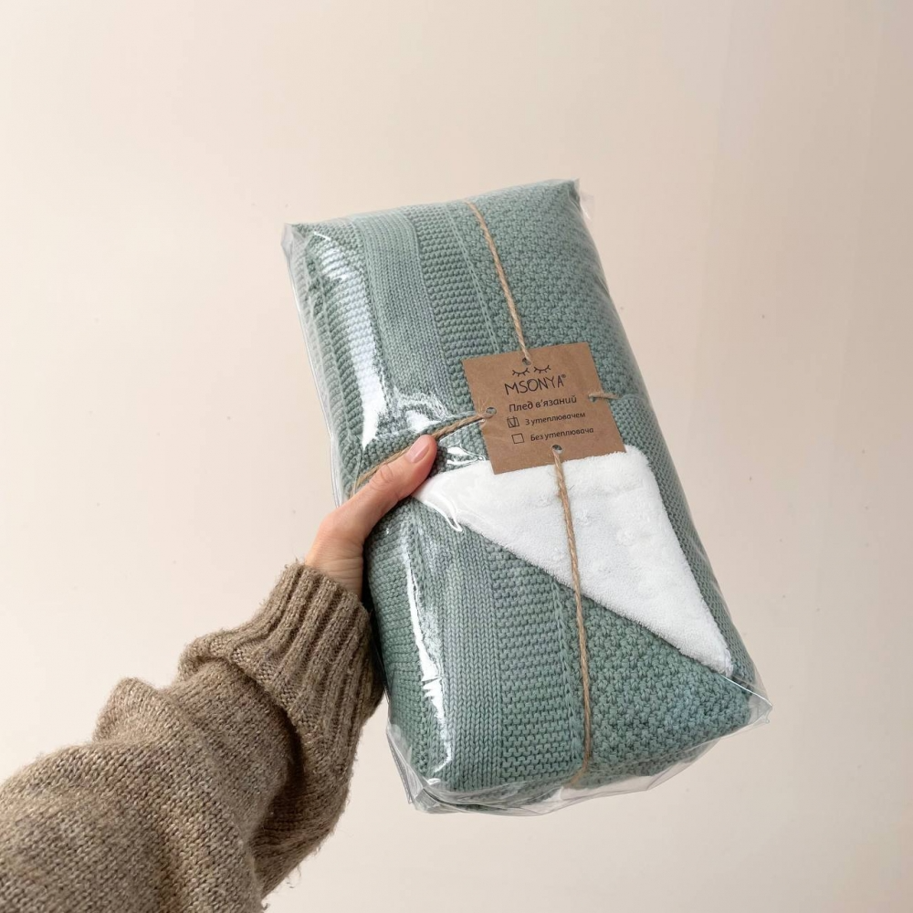 Плед Рогожка-Wellsoft темна м'ята (в'язка утеплена) 100х80 см