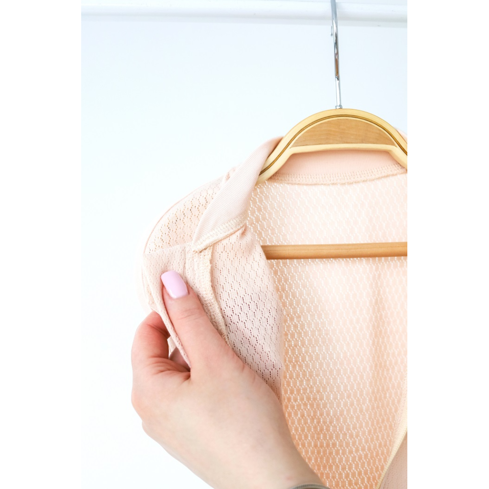 Модель виконана з трикотажу трансферлі — легкої ажурної тканини з делікатним візерунком з дірочок.