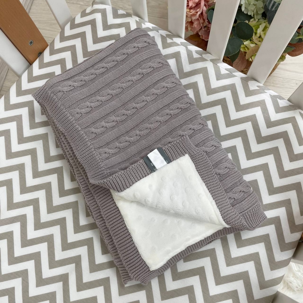 Плед Косы-Wellsoft серый (вязка утеплённая) 100х80 см