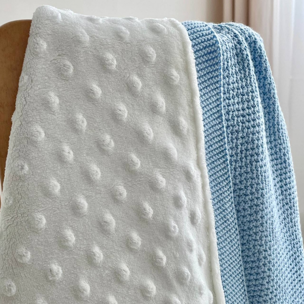 Плед Рогожка-Wellsoft голубой (вязка утеплённая) 100х80 см