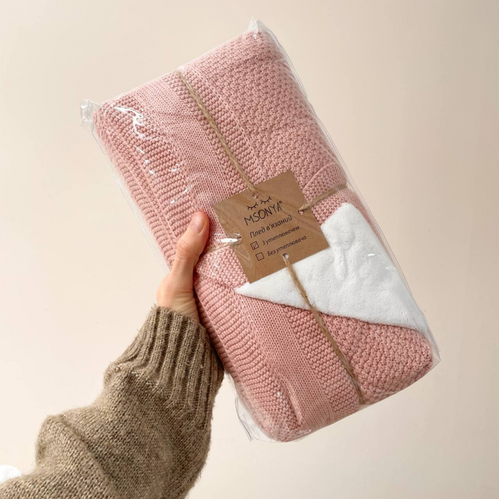 Плед Рогожка-Wellsoft пудра (вязка утеплённая) 100х80 см