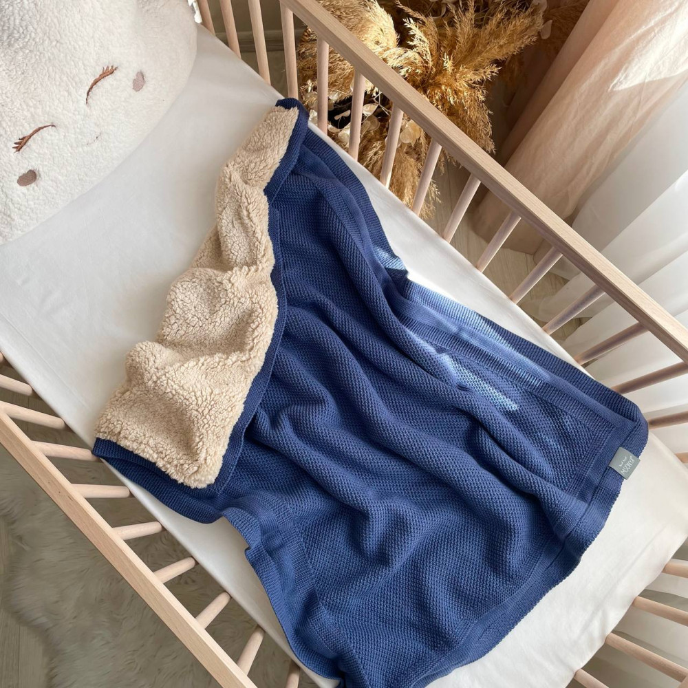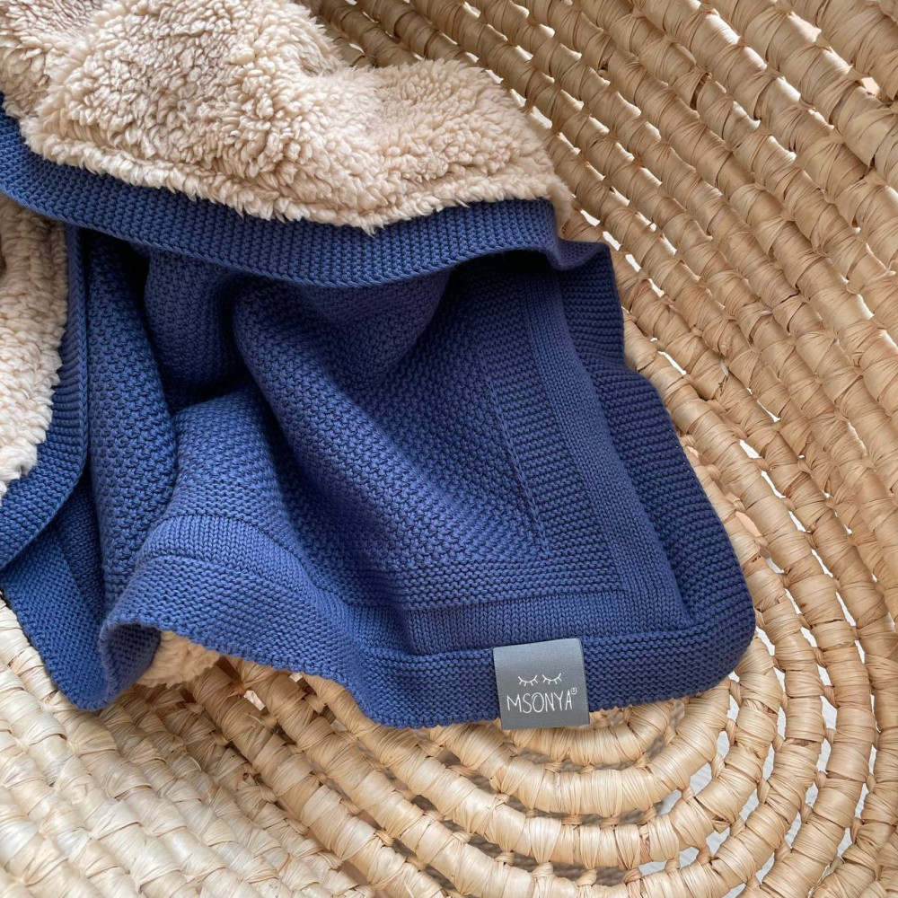 Плед Рогожка-Тедді джинс (в'язка на махрі) 100х80 см