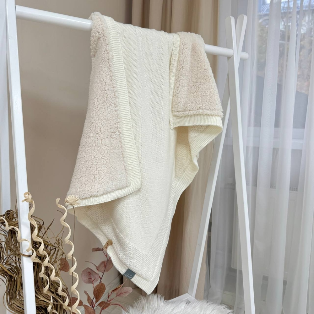 Плед Рогожка-Тедді New айворі (в'язка на махрі) 100х80 см