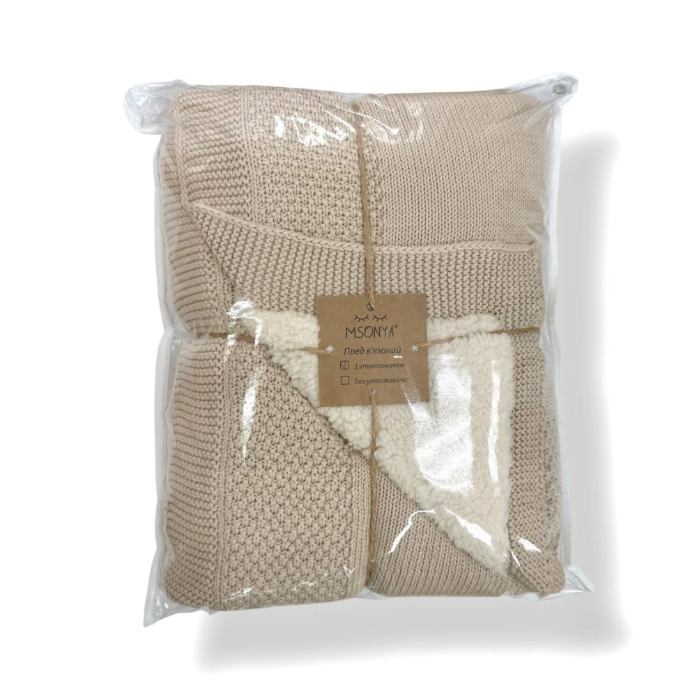 Плед Рогожка-Тедді New пісок (в'язка на махрі) 100х80 см