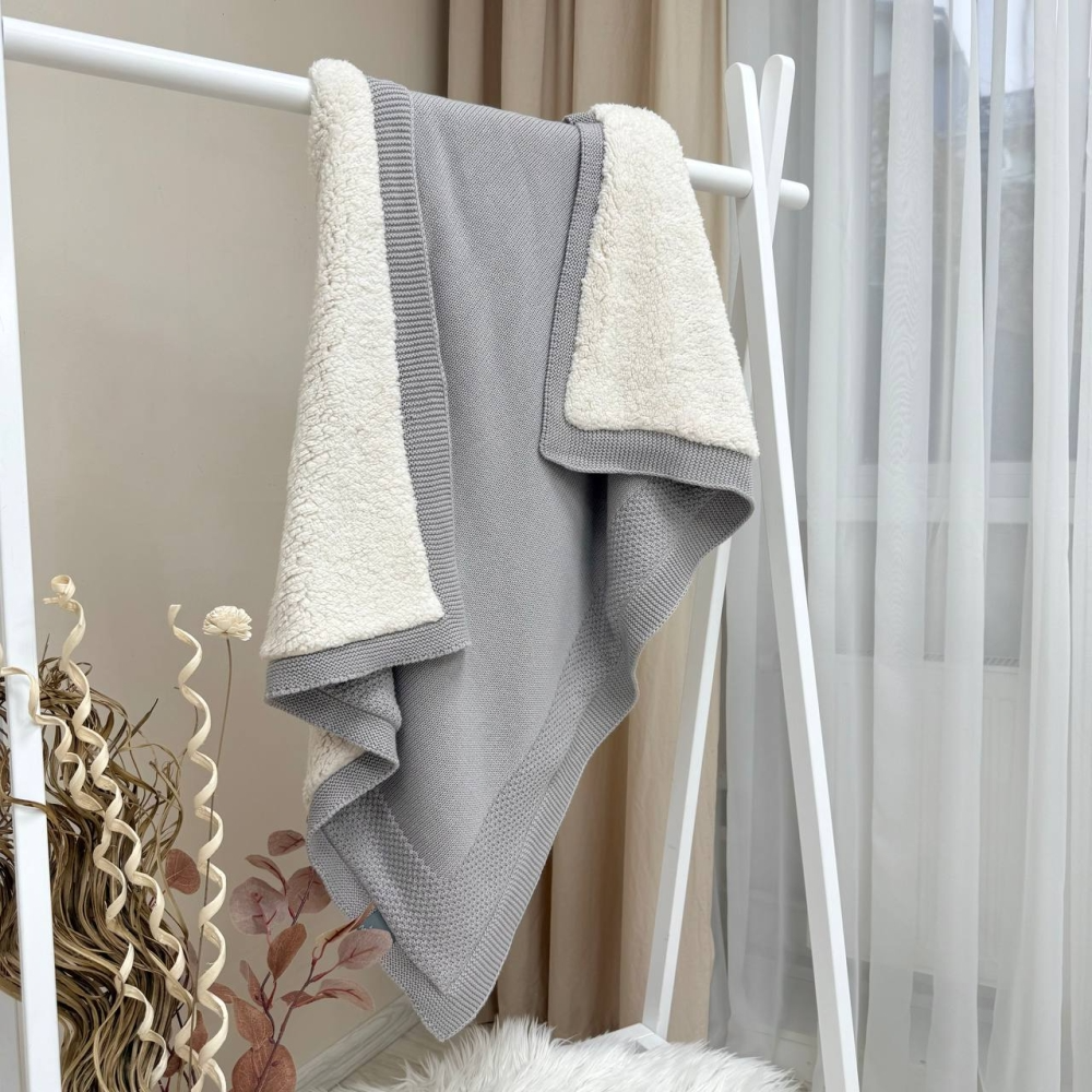 Плед Рогожка-Тедді New сірий (в'язка на махрі) 100х80 см